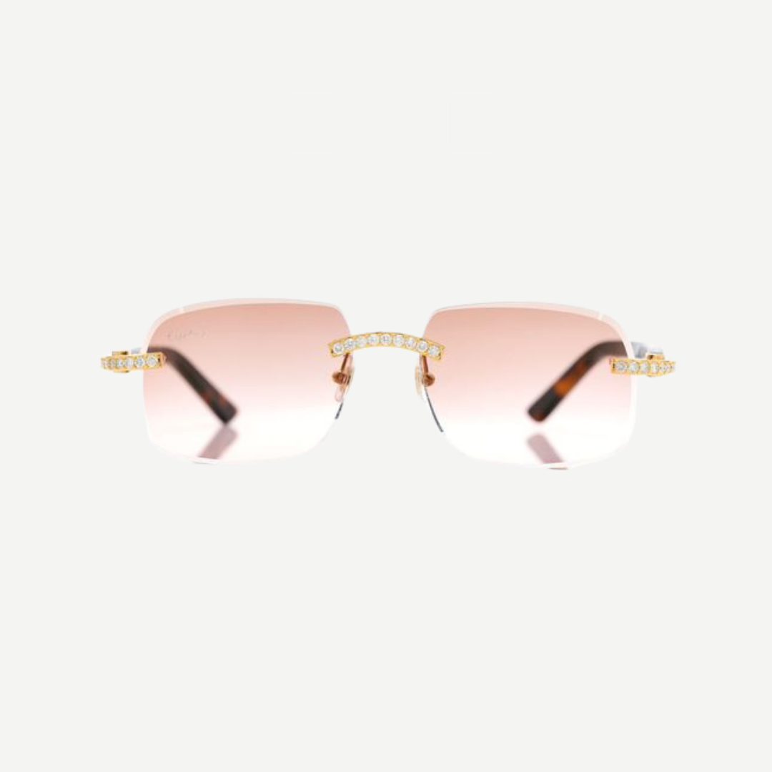 Cartier Tone Glasses Iced Out Diamond Rimless Yellow