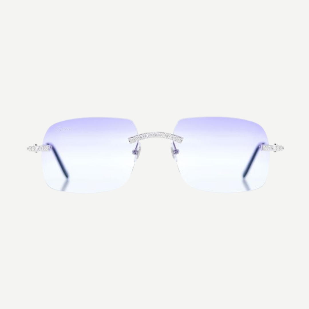 Cartier White Tone Glasses Iced Out Diamond Rimless White